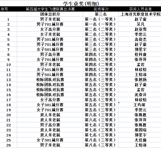 据悉,中国大学生飞镖联赛共有4站,虽然上年疫情防控期间我校未参加第一站和第三站比赛,但年度总分仍然居第三名,这证明了我校飞镖队的绝对实力。