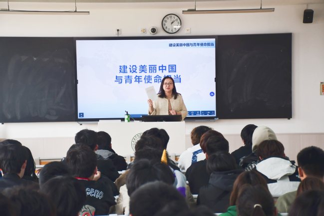 为深入学习贯彻党的二十大精神,响应党的二十大报告中关于我国新时代生态文明建设的战略任务——走人与自然和谐共生的中国式现代化道路,引导同学们充分了解建设美丽中国的重要性,激励广大青年学生担当时代重任,为建设美丽中国、实现中华民族伟大复兴贡献青春力量。3月27日下午,校党委副书记刘丽走上形势与政策课讲台,为学生作题为《建设美丽中国与青年学生使命担当》的思政课。