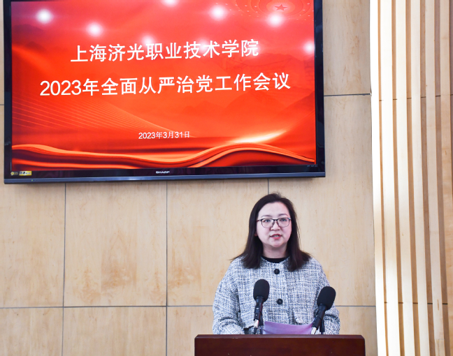 姜富明书记在会上作了题为《学习宣传贯彻党的二十大精神 坚持以严的基调强化正风肃纪》的报告,分析了当前全面从严治党面临的形势,传达了中央及上海市对全面从严治党新部署,提出了学校全面从严治党工作要求。他指出,党员干部要深入贯彻落实党的二十大和二十届中央纪委二次会议精神,按照十二届上海市纪委二次全会提出的2023年工作重点部署,力争做到五个方面的工作要求:一是用习近平新时代中国特色社会主义思想凝心铸魂,增强全面从严治党政治自觉;二是全面履行管党治党政治责任,主动担当作为;持续深化落实中央八项规定精神,驰而不息纠治“四风”;四是坚持全面从严,一体推进不敢腐、不能腐、不想腐;五是党员领导干部带头廉洁自律,牢守纪法底线。姜富明书记寄语全校党员干部四句话:要爱党爱国,加强二十大精神的学习,坚定政治立场,与党中央保持高度一致,严肃党的政治纪律,保持政治上的坚定和清醒,经得起任何风浪的考验;要廉洁自律,经得住金钱与物质利益的各种考验,做到不突破“红线”,不心存侥幸,持续深化落实中央八项规定精神;要求真务实,始终把师生放在心上,力戒形式主义、官僚主义,真心实意为师生服务,保持高尚的情操,树立良好的形象,远离不良诱惑,严守思想道德防线;要力争上游,用心想事、主动干事、担当处事,以事业充实人生,以事业实现价值。