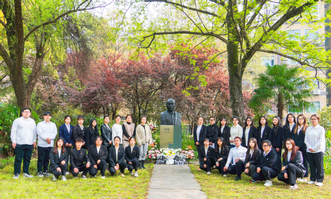 一束束鲜花簇拥着李国豪教授的铜像,诉说着无尽的思念与敬仰之情;济光师生站在铜像前深切缅怀,追忆李国豪教授的崇高风范和丰功伟绩。今年是我校首任董事长、同济大学老校长、两院院士、著名桥梁工程与力学专家、土木工程学家、教育家李国豪教授诞辰110周年,也是我校建校30周年华诞,为深切缅怀并感念李国豪教授为民办高等教育事业所作出的卓越贡献,4月7日,在团委书记邓婷婷老师的带领下,各学院分团委书记、团学骨干共30名师生怀着崇敬的心情,共赴同济大学四平路校区李国豪教授的铜像前举行“匠心精神永相传” 祭扫缅怀仪式。