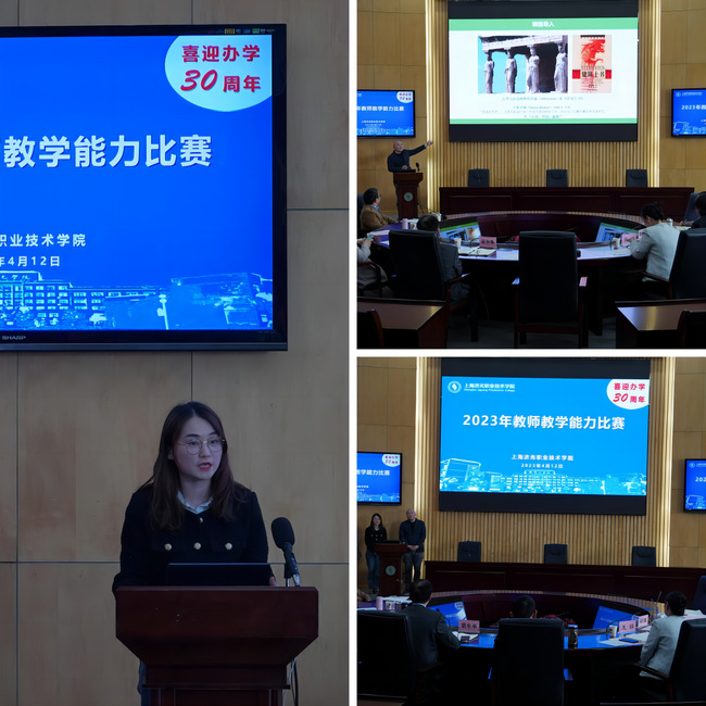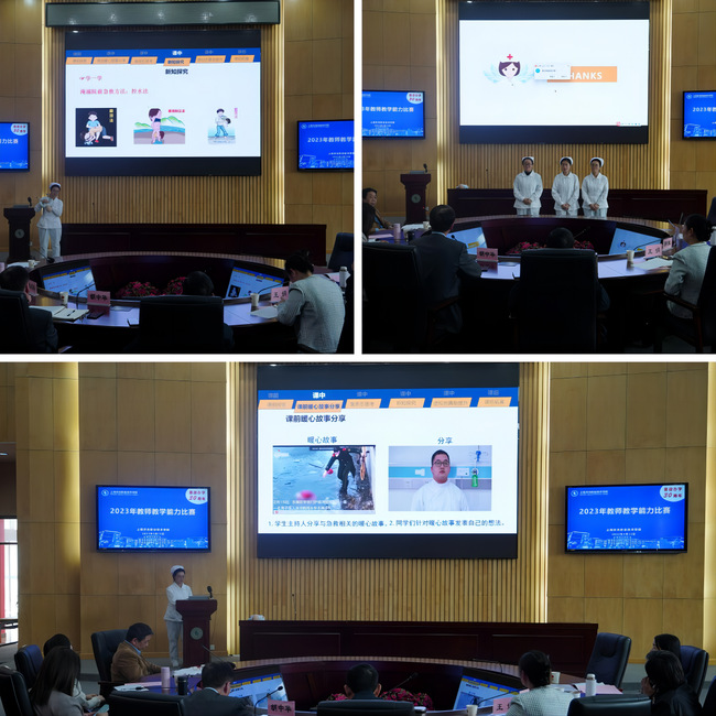 为了强化教师立德树人能力,夯实教学基本功,提高教学业务能力与水平,全面促进教师综合素质、专业化水平和创新能力提升,教务处组织开展了2023年教师教学能力比赛。该项比赛由初赛和决赛组成,来自7个教学单位的10个教师团队申请参赛,经过专家评审、学校审核等程序,共有6支教师团队进入现场决赛。4月12日下午,我校在宝山校区圆形会议室举行了2023年教师教学能力比赛。