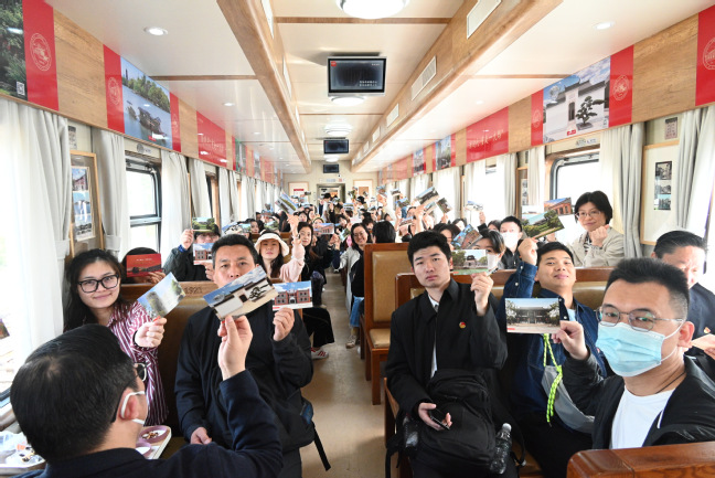4月22日上午,培训班学员搭乘“南湖1921”红色主题专列前往嘉兴南湖,在沉浸式体验中寻访红色足迹,拉开现场教学红色主题之行的序幕。在红色专列上,列车员为学员们讲解一个个红色小故事,学员们为自己及亲友书写一封封明信片,在专列中体验移动课堂。