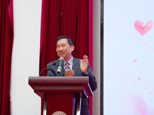 胡展飞校长在讲话指出,护理学院近年来取得了不少的教学成果,是学校高质量发展不可或缺的部分。他希望在座的同学要以“爱心、关怀、担当、责任”守住选择护理专业的初心,始终牢记今日宣誓时的决心,脚踏实地在护理岗位中不断积累,在技术上精益求精、在服务上主动关心,走好成长成才之路,成为行业能手,服务“健康中国”。