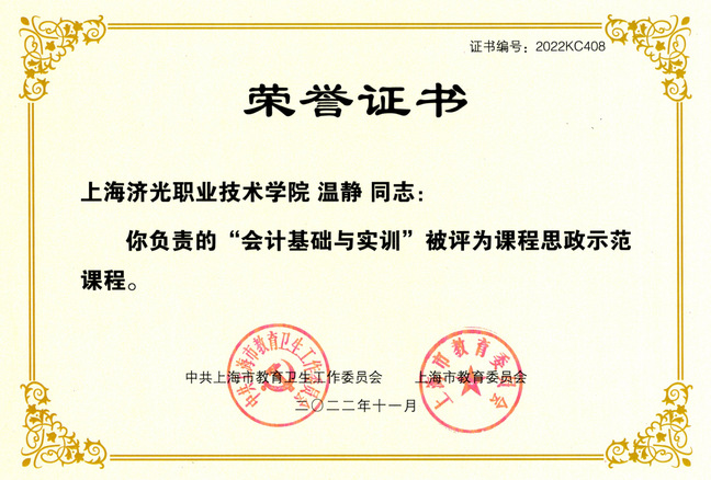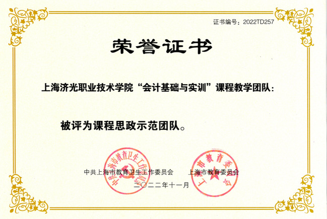 近日,我校经济管理学院大数据与会计专业的《会计基础与实训》课程经过层层筛选,脱颖而出,成功入选上海市思政示范课、示范团队。