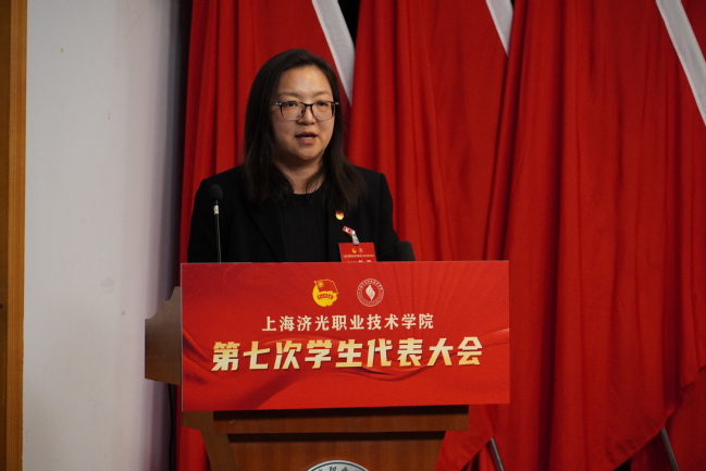 本次大会听取了《上海济光职业技术学院第六届学生会工作报告》,工作报告由上海济光职业技术学院第六届学生会主席团成员张海婷同学宣读,她主要根据“砥志研思新征程,笃行致远再出发”及“借实干整饰自我,以笃行丰盈青春”两个部分进行了汇报。