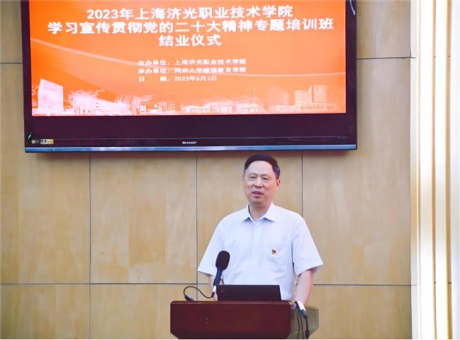 校党委书记姜富明出席结业仪式并发表讲话,他首先对全体学员顺利完成培训任务以及学习所获表示祝贺。同时,他强调,“教育兴则国家兴,教育强则国家强”,是我们党在新的历史条件下,对教育发展规律的深刻认识和重大理论创新成果。我们要以习近平总书记在中共中央政治局第五次集体学习时的重要讲话精神为指导,以立德树人为根本任务,以为党育人、为国育才为根本目标,以服务中华民族伟大复兴为重要使命;要把高质量发展作为教育的生命线,聚焦国家重点战略需求,动态调整优化专业群建设,提升教育对高质量发展的支撑力、贡献力;要把加强教师队伍建设作为建设教育强国最重要的基础工作来抓,广大教师要坚定理想信念、陶冶道德情操、涵养扎实学识、勤修仁爱之心,树立“躬耕教坛、强国有我”的志向和抱负,坚守三尺讲台,潜心教书育人,源不断培养高素质技术技能人才、大国工匠、能工巧匠。