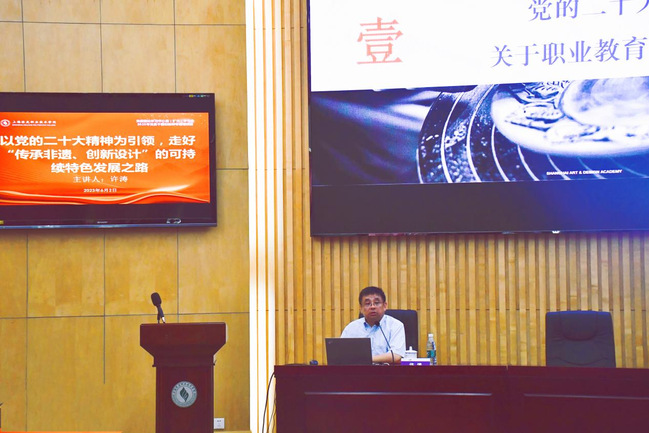 ▲上海工艺美术职业学院党委书记许涛来校作专题辅导报告