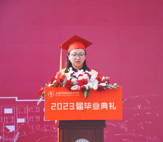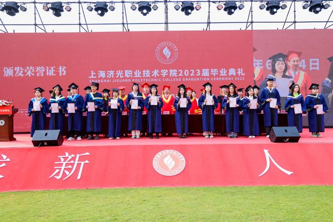 校党委副书记刘丽宣读了年度上海市优秀毕业生和校级毕业生表彰名单。今年学校共有74名同学被评为“2023年度上海市普通高等学校优秀毕业生”,124名同学被评为“2023年度上海济光职业技术学院优秀毕业生”。