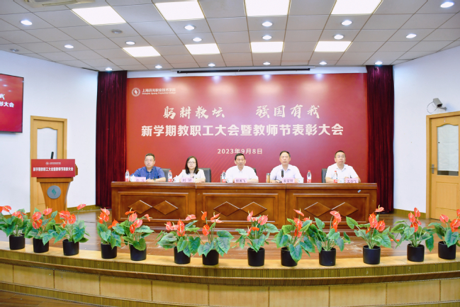 岁月成碑,铸就丹心一片;师以匠心,遍植桃李满园。9月8日上午,在第39个教师节来临之际,学校在报告厅隆重举行新学期教职工大会暨教师节表彰大会。校长胡展飞、党委书记姜富明、党委副书记刘丽、副校长王云飞、副校长孙遥出席大会,学校全体教职员工参加大会。大会由姜富明书记主持。