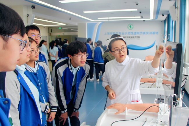 10月13日下午,上海市宝山区海滨中学41名高三学生在学校领导和老师的带领下参观我校护理学院,并于实训中心9楼“上海市助产专业示范性虚拟仿真实训基地”开展系列实训操作体验活动。我校副校长孙遥、护理学院常务副院长姚淳及相关教师出席活动。
