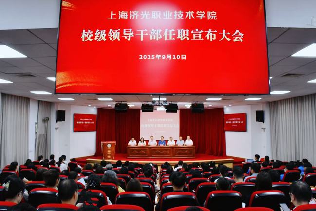 会上,周家伦董事长宣布董事会任命决定:聘任贺鹏飞同志为上海济光职业技术学院校长。