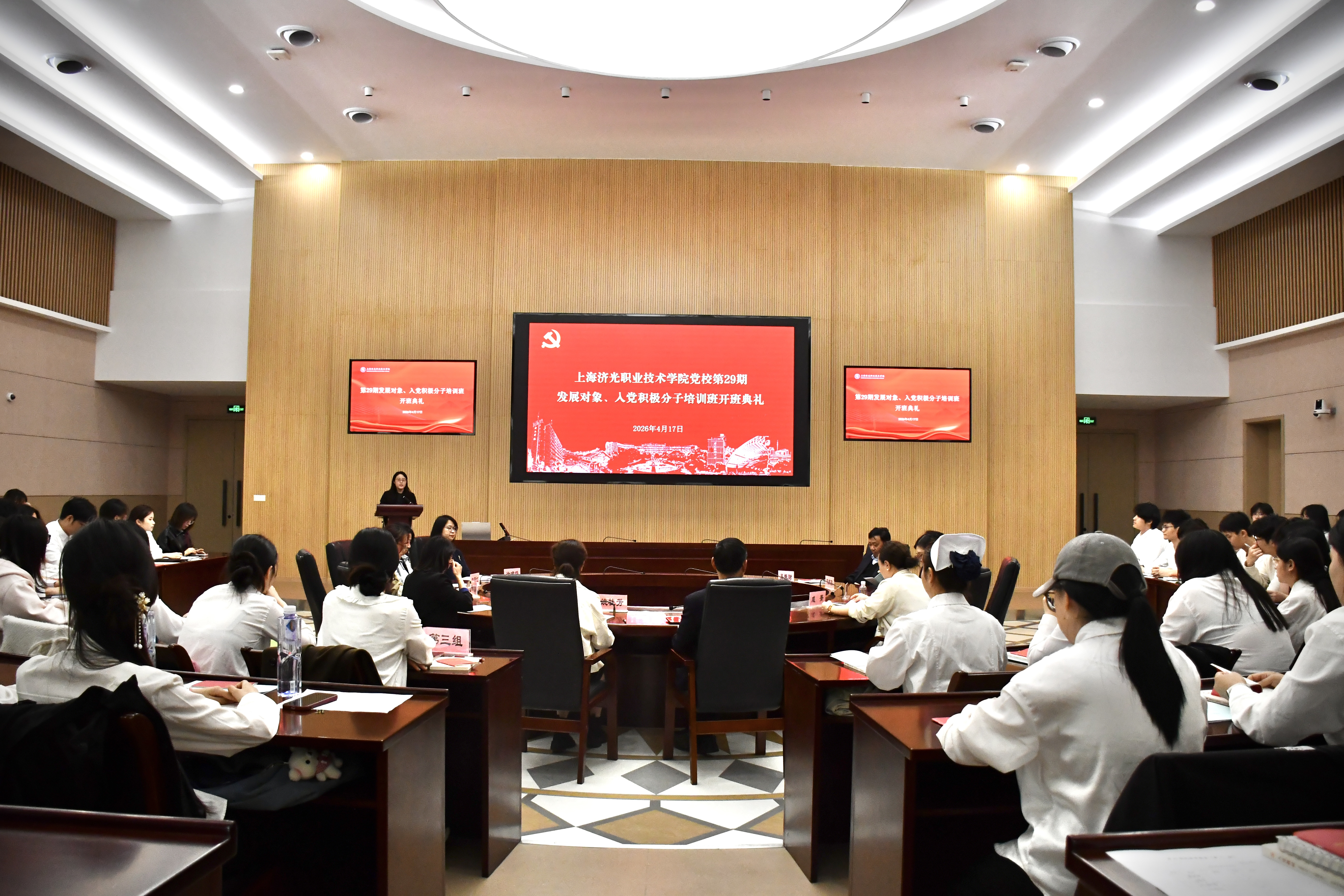 4月17日下午,学校党校第29期发展对象、入党积极分子培训班开班典礼在宝山校区圆形会议室举行。校党委书记姜富明作首场专题报告,党委组织部部长姚桂芳,各党总支、直属党支部书记、培训班负责教师及全体学员参加开班仪式。开班仪式由党委组织员张倩倩主持。