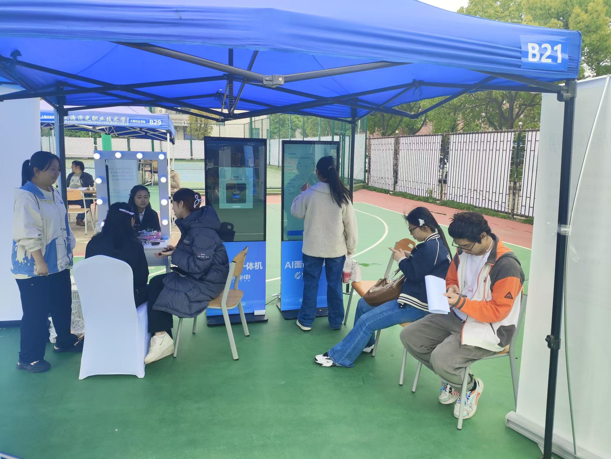 为进一步提升学生就业竞争力,双选会现场特别设置就业赋能区,配备AI求职机,打造一站式求职解决方案,同时提供化妆服务、证件照拍摄等贴心服务,帮助学生以良好的精神面貌参与面试,展现最佳职业形象。宝山区仲裁院、就业创业指导专家团队、校外孵化基地专家团队及6所民办本科高校招生老师等,围绕劳动权益、简历优化、创业扶持、专升本报考等热点问题,为济光学子答疑解惑。